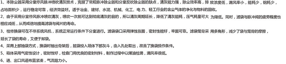 | 过滤风速m/min | 1.0-1.50 | 1.0-1.50 | 1.0-1.50 | 1.10-1.70 | 1.20-1.70 | 1.20-1.80 | |