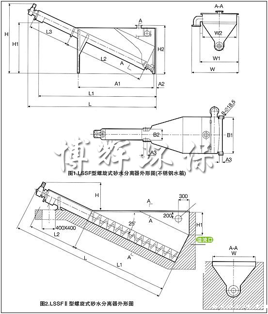 (1)螺旋式砂水分离器由无轴螺旋、衬条、U 型槽、水箱、导流板、出水堰和驱动装置组成。