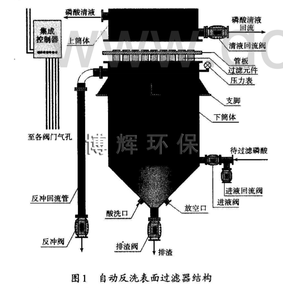 自动反洗表面过滤器是利用自身过滤的清液来完成反冲洗过程,反冲洗时不需要排空过滤器,反冲洗过程可在数秒内完成,反冲洗结束后过滤器又可进行过滤,反冲洗下来的滤渣由排渣口排出,整个过程由电脑自动控制。